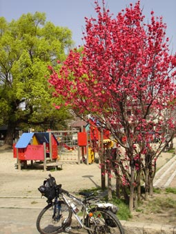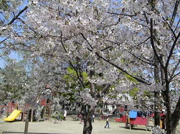 2005年4月8日、桃谷公園はサクラは満開だ。