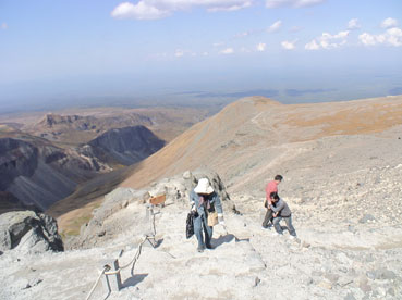 | ジープに乗って、山頂近くへ。 | 山頂へは歩いて登る。 | |||||