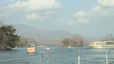 そして、大沼公園へ。ここで昼食を採った後に、大沼の湖で高速ボートに乗った。