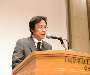 | 開会の挨拶に金賢太郎大会実行委員長 |
