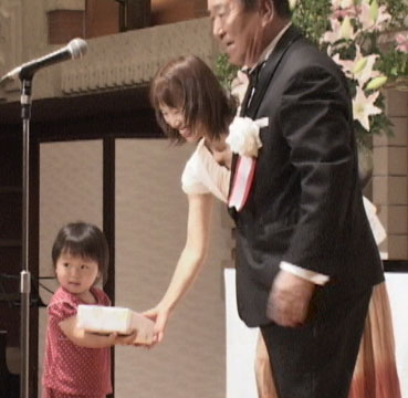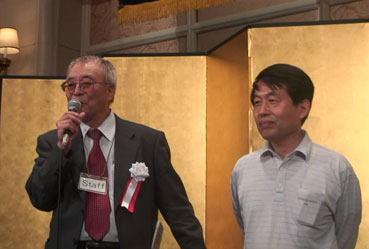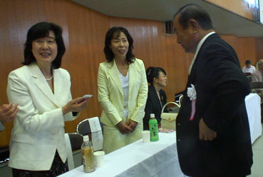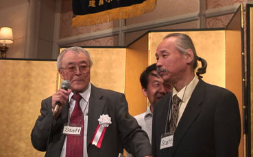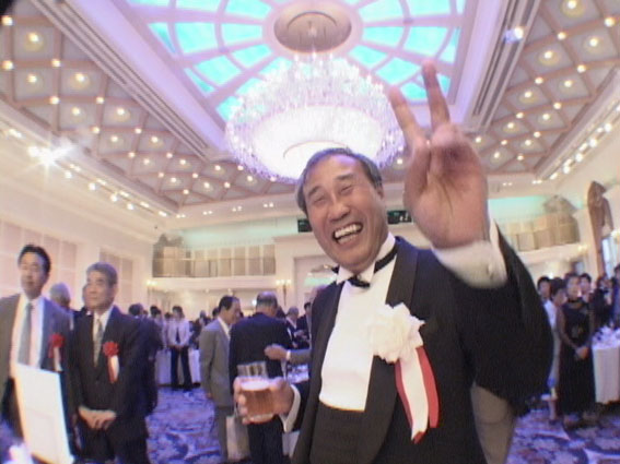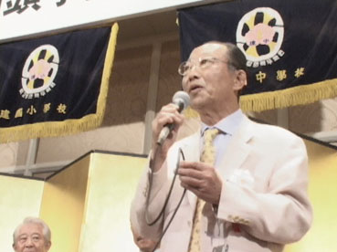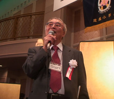 校友会会長で、実行委員長の金賢太郎さんは、ごきげんだ。 |