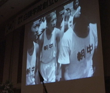 午前10時から学校で在校生の式典が始まったが、その前に小学生に幻のフイルムを見せるため、