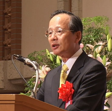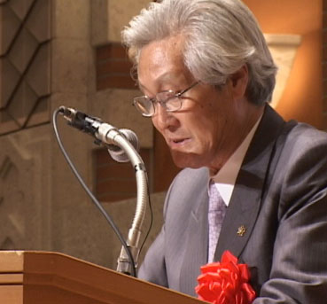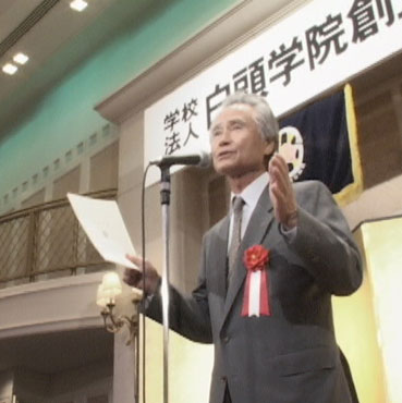 午後3時からは、帝国ホテル大阪で、関係団体や来賓、校友生などを迎えての記念式典が行われた。