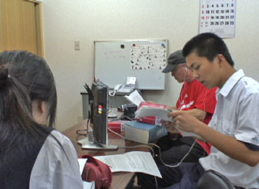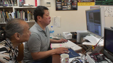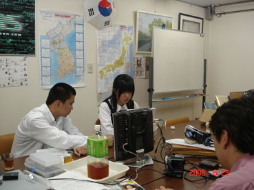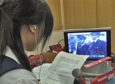 | 韓国YTNテレビ記者、朴サユさんのプロの指導を受けながらの収録作業だ。 | |||||||||