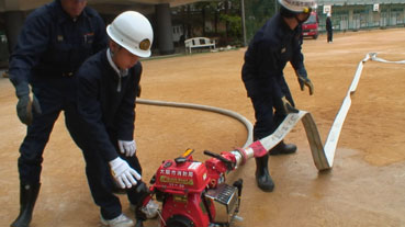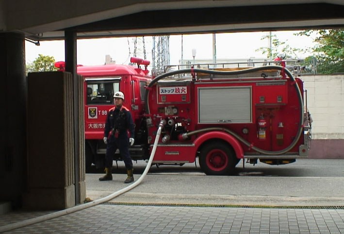 | 放水ポンプの為の発動機をスイッチオン。水を火の元へ放水する。 | ||||||