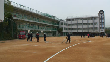 火事が起きたという想定で生徒は運動場へ避難した。 | ||||