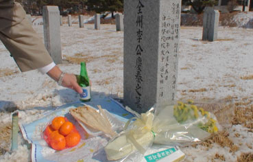天安にある李初代校長の墓をお参りした。