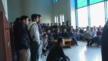 | ちょうど野球の日韓戦で、学生達がTVに釘つけ。 | |||||||||