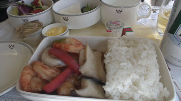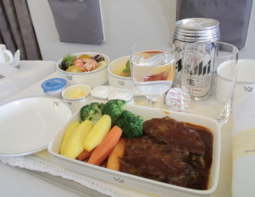 | 金ヒョンテラン先輩のおかげで、ビジネスクラスに乗った。これが機内食だ。 | |||||||||||