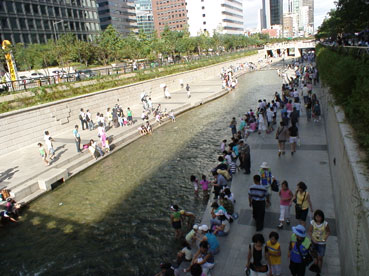 | 土曜日のソウル市民はチョンゲチョン川沿いで遊ぶ。 | |||||||