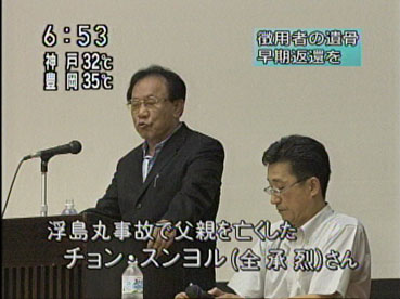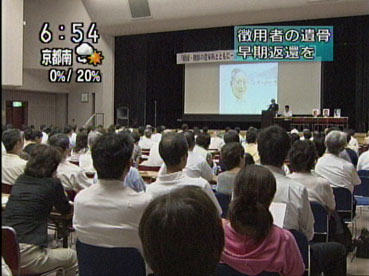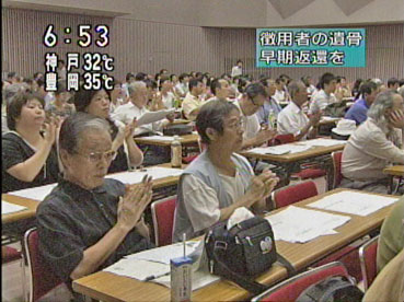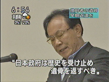 | 8月3日、朝のNHKニュースで「徴用者の遺骨を返還」の集会もようを放送した。 | ![]() |