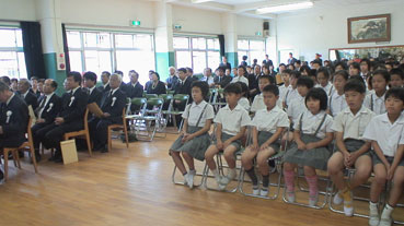 | ご遺族から学校へ記念品目録を渡す。 | |||||||