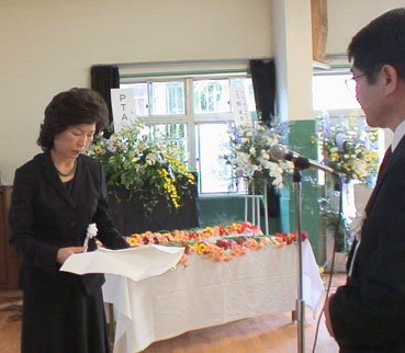 | 遺族代表として、高理事長のことを子供達に話す。 | |||||||