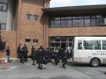 | 建国吹奏楽部の約30人は建国バスで昼前に京都学園に着いた。 | ||||||||