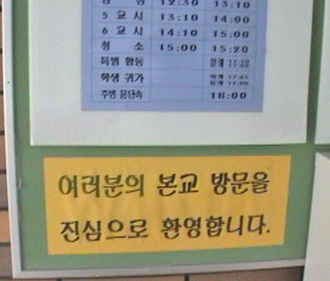 | 教室や案内板はすべてハングルで書かれている。 | |||||||||