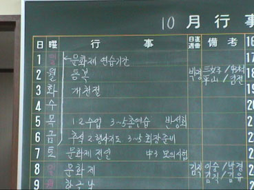 | 行事予定がすべてハングルで書かれている。 | |||||||||