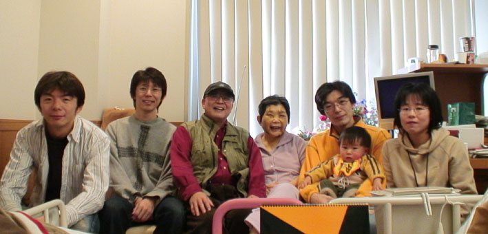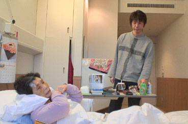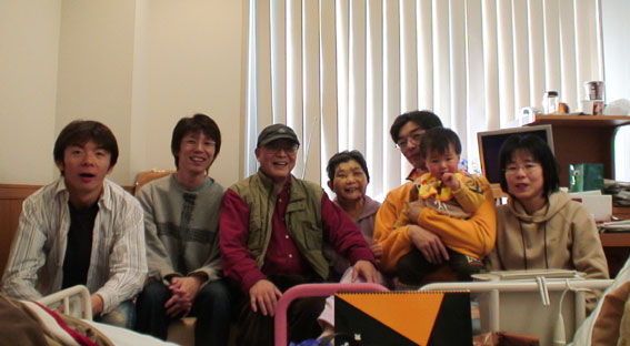 日赤の病室で、家族全員そろって。