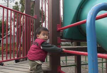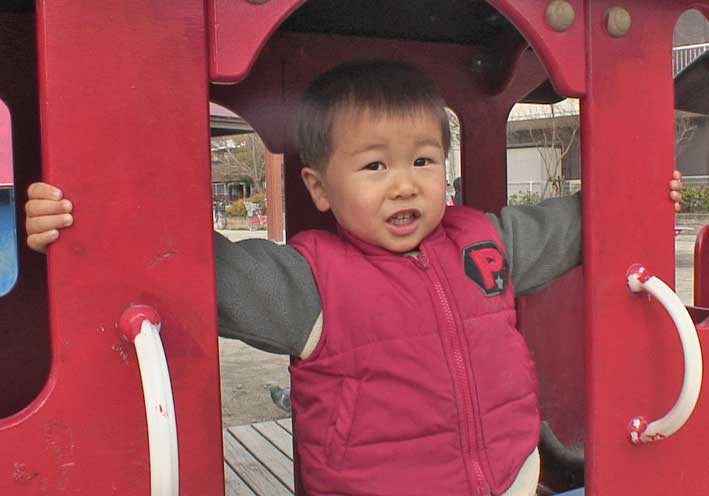 敦史は元気だ。近くの桃谷公園で遊ぶ。