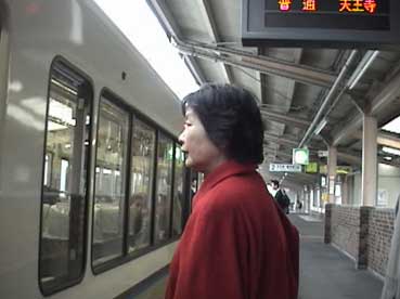 | 環状線桃谷駅のホームで。天王寺行きの電車に乗る。 | |||||||||