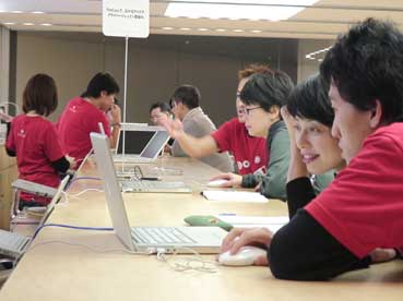 | Apple Store 心斎橋ではMacユーザー達のサポートをする。 | |||||