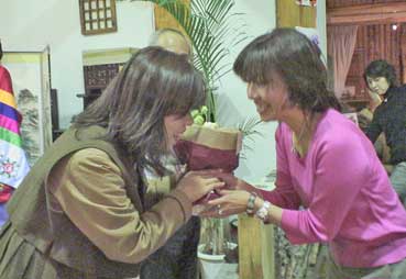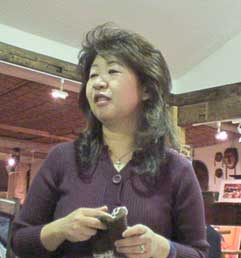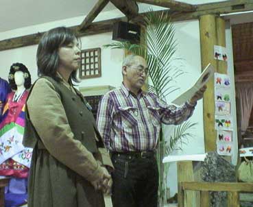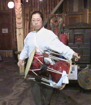 | 丸尾とし子さんは習っているチャンゴを披露。チャンゴは持参して来たもの。 | ||||||