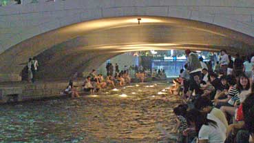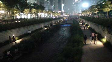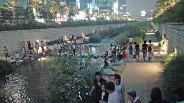 | チョンゲチョンには夕涼みの市民で賑わっていた。 | |||||