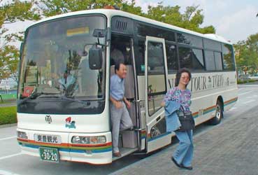 | 観光バスに乗って、桃谷駅前9時半出発。 | |||||||||
