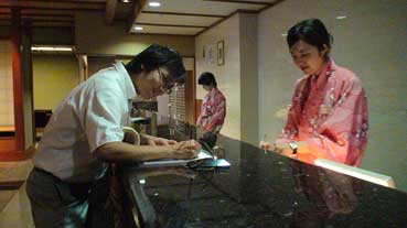 | 担当の児玉さんがチェックインする。 | ||||||||