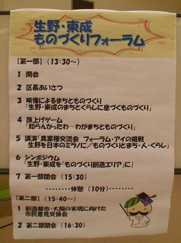 2007年9月29日、生野・東成ものづくりフォーラムが生野区民センターであった。