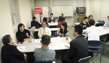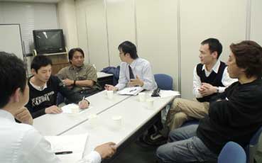 月例会は「会社を考える勉強会」。3班に別れて、話し合いが行われた。