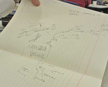 | 佐藤さんのメモ。変わった書き方だ。 |