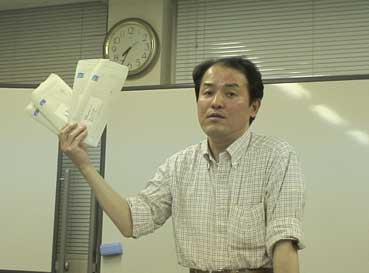 □場所 大阪商工会議所 東成/生野支部 □参加者 米澤、岡田、堀口、熊谷、山崎、吉田、児玉、出雲 松尾、中西、高村、河手、高、玉利、増井 (敬称略) ▲岡田代表幹事例会開始の挨拶 ▲今回の進行担当、米澤氏。 テーマは、『食品の裏側について』 ○どうして、食品に興味を持つようになったのか? →結婚するまでは、一人暮らしの時もあった。その時は、安く 早く、おいしい ものが、良い食品だと思っていた。結婚して妻と意見が違い(妻は、少し高くても 安心できるものが良い食品)よく口論になったりもした。 妻が『食品の裏側について』の本を読んでいた。自分も手にとって読んでみると 興味を持つようになり、セミナーにも参加してみた。 ★疑問も浮かんできた…? ▽日本は、食品の自給率が低いのになぜ、こんなにも多くのものが、安く手に 入るんだろうか? ▽世界のあちこちで食糧不足の話を聞くが、日本ではホテル、家庭で残飯など が多く出ているのはなぜなんだろう? ※世界中の食料の7割が裕福な国(アメリカ、ヨーロッパ、日本など)に 集められ、残りの3割でその他の多くの国で分けられているのが現状。 ※最近は、アトピーの子供が増え、すぐに、キレる子供が多くなってきている。 これも食がなんらかの原因になっている研究結果も報告されている。 ▲日持ちする、安い、便利な食品は、食品添加物が市場に普及するようになったから。 ○食品添加物を使用すると…。 →・安く作れて非常に利益がふくらむ。 ・腐らないので長持ちする。 ・便利に使える。 ※これらは、消費者側が求めてきたものだった。 (時間が省けて、安くおいしいモノが食べたい!) ★食品添加物について: ・化学調味料(味の素、粉末のスープ、着色料など)は 全て、石油を原料に作られている。 ・国がマウスを使って5年間実験データーを取って安全性を検証。 (単体では安全だが、複合して化学変化後までのデーターは安全かどうか定かでない。) ・“台所にないもの” ⇒ 安く、簡単、便利、きれいなもの ▼スキー場で食べた野沢菜のつけもの、とおみやげに買ったおつけもの の味が違うのは、なぜ? →おみやげの方には、腐ってクレームなどが来ないように防腐剤が入っている。 ▼1000円もする醤油があるのに、100円で醤油が買えるのは、なぜ? →1000円のものは、大豆などほんものに対し、100円の醤油は、 食品添加物だけで本物と同じ味を出している。 ※コンビニ弁当に付いているマヨネーズも同じ。ス◯◯ータも油と水 でつくられている。(だから、安く大量に作れる。) ▼手打ちうどんも、安いものの中には、食品添加物のグルテン、乳化剤 で簡単に作れる。職人じゃなくてもパートの人がすぐにコシもあり シコシコと美味しい麺ができてしまう。→“職人の魂を売る” ▼ミートボールは、肉のそぎおとした捨てるしかなかった材料の寄せ集めから生まれた。リン酸、結着剤、化学調味料を混ぜてほとんど肉と呼べるものが入っていなくても添加剤の多くで作られていた。(最近では、肉で作ったものもある。) ★どうして食品添加剤が、わかりにくくなっているのか? キャリーオーバー 加工助剤 ばら売り、店内販売⇒ ほか弁、おそうざい パッケージが小さいもの⇒シロップ、クリーマー 栄養補助剤⇒栄養ドリンク 類は、表示免除のルールで表示しなくても良い。 また、一括表示で何種類の添加物をいっぺんに一つの 名前で示せば良いとされている。 ⇒グルタミン酸ナトリウム、リボヌクレオチドナトリウム→調味料で一括表示 クエン酸、乳酸、酢酸、アジピン酸→酸味料で一括表示 など。 ★食品添加物と上手につきあっていきましょう! 裏を見る 加工度の低いもの→自分で手を加える 知ってて食べる。(知らないで食べるのではない。) 安いものだけで飛びつかない。 素朴な疑問を持つ。 |