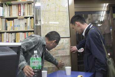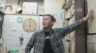 | 帰りに猪飼野探訪会の副代表である足代さんの店「あじろ書林」前を通った。まだ店が開いていて、足代さんに会った。 | |||||