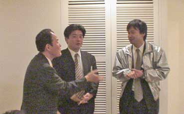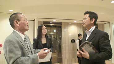 | 猪飼野探訪会の足代さんと姜さんに佐藤さんが会った「今度、百済<会>」に参加します」と、佐藤さん。 | ||||||