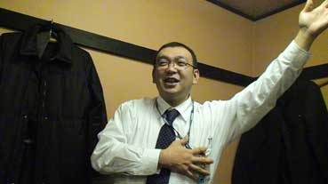 | 佐藤さんが店の店員を写真に収める。 | |||||||||||