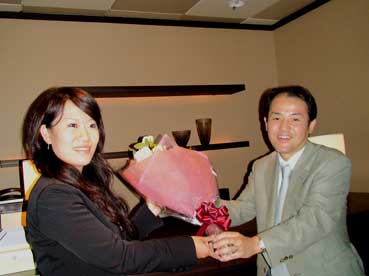 岡田さんご苦労様と、花束を進呈。 | ||||||