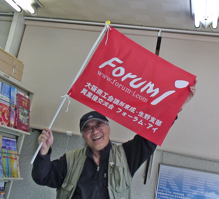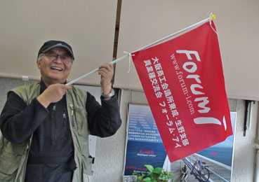 そのために目印として、フォーラム・アイの旗を作りました。すばらしい出来映えです。