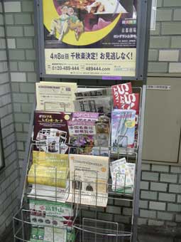 | 地下鉄鶴橋駅に、 スルッとKANSAIのパンフレットがおいてあった。 右のは「いくのトライアングル・タウンMAPが置かれている。 |