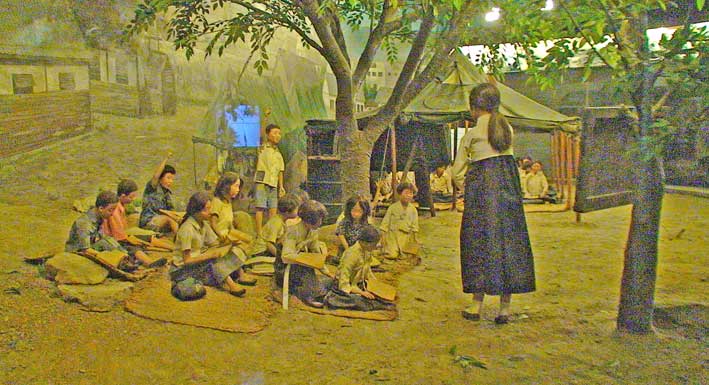 校舎が無く、木下で勉強をした。(私も経験した)
