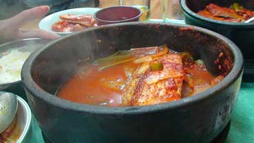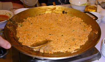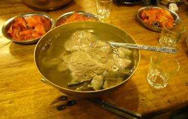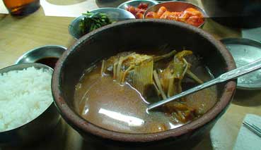 | 私はガイドさんと清水さん、横山さん、4人で、私がよく行く、タロクッパブチブへ行った。 ヘジャンクを食べた。そこにはビンデトクもあったので、それも食べた。 |