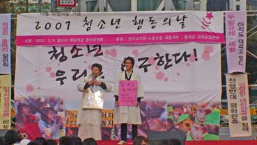 | 在日韓国学生達も参戦している。 | ||||||||