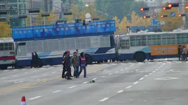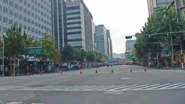 | ジョンロの道に車がない!あんなに混んでいるところなのに。これはデモがあるので、通行禁止をしているからだ。 | |||||||