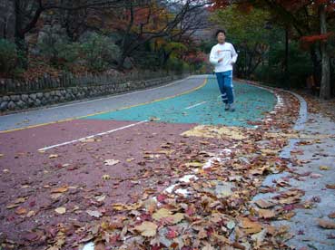 | 朝早く南山をジョギングする高橋さん。 | ||||