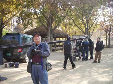 ドラマ撮影隊のみなさん。サングラスの男、悪役かな?