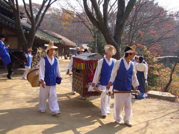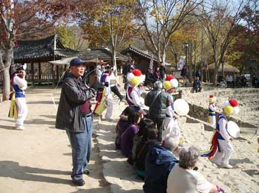 民俗村では、韓国ドラマ撮影の皆さんに会ったり、踊りを見たり、とても時間が足りない。