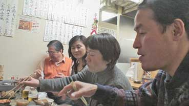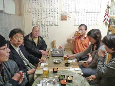 | 講座が終わってからの楽しみが、懇親会だ。 きょうは「はす」で、楽しい課外授業を行った。 |