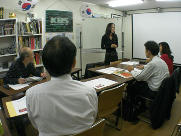 前半は簡単な会話を、後半は韓国ドラマ「パリの恋人」を上映しながらの勉強を行った。