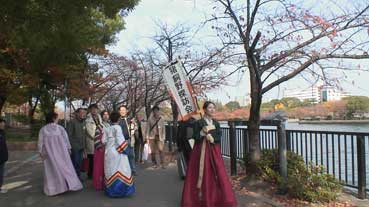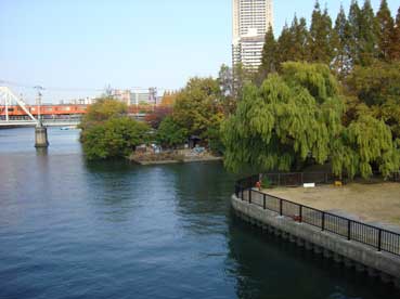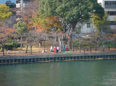 朝鮮通信使水上パレードの大川のそばを歩く。