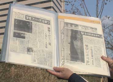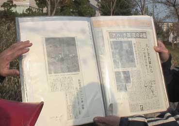 日羅碑の前でチェサを行う。読売新聞に記事が載る。