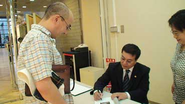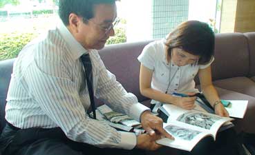 | 横澤さん、姜さんから本にサインをもらう。 | ![]() |